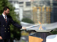 El Príncipe de Asturias fue el último relevista de la antorcha olímpica a su paso por Madrid