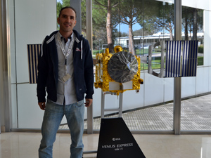Miguel Pérez Ayúcar es ingeniero de telecomunicaciones por la Universidad Pública de Navarra y ha participado en numerosos proyectos espaciales. Su carrera comenzó en el Instituto Nacional de Técnica Espacial (INTA), donde trabajó en un satélite que se llamaba César. Después fue contratado en Minisat, un satélite científico español. En el año 2002 consiguió otra beca para ir a la Agencia Espacial Europea en Noordwijk (Holanda). Allí estuvo involucrado en la misión Cassini-Huygens a Saturno. Después pasó a Venus Express, una misión de la ESA alrededor de ese planeta. Tras esta asombrosa carrera, durante los años 2006 y 2007 vino a Madrid, al centro ESAC de la ESA y en noviembre de 2013 comenzó en una de las misiones más importantes de la historia, la misión Rosetta.