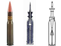 Tres tipos de proyectiles compuestos con uranio empobrecido