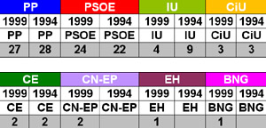 El gran perdedor ha sido Izquierda Unida, cuyo candidato, Alonso Puerta ha obtenido cuatro escaños por los nueve con que contaba el partido de Julio Anguita. También han obtenido representación parlamentaria Convergencia i Unió, Coalición Europea, Coalición Europea Nacionalista Europa de los Pueblos, Bloque Nacionalista Galego, y Euskal Herritarrok. Loyola de Palacio se congratulaba de su victoria y de la de sus compañeros del resto de Europa, pero evitaba comentar ese escaño perdido y el avance socialista. La ex ministra se limitó a decir que había habido una reestructuración del voto de izquierda y que este resultado era muy halagüeño de cara a las elecciones generales del año próximo.