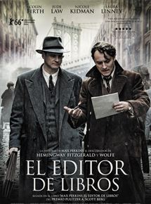 Este 7 de Diciembre llega a nuestras pantallas "El Editor de Libros" donde el olvidadísimo Michael Grandage nos muestra una inmejorable mezcla entre la literatura y el séptimo arte. La trama comienza en el Nueva York de 1929 donde Maxwell Perkins (Colin Firth), prestigioso editor y descubridor de Scott Fitzgerald (Guy Pearce) y Ernest Hemingway (Dominic West), decide publicar, tras leer el primer borrador, a un desconocido Thomas Wolfe (Jude Law). Grandage diseñará un argumento basado en la sinuosa amistad entre Perkins, un hombre tranquilo dado a su familia y a su trabajo, y Wolfe, un joven vividor difícil de tratar con un gran talento para la escritura.